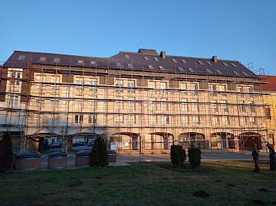 Izvode se radovi obrade završnom žbukom nove toplinske fasade, također se izvode i radovi na novom energetski učinkovitom kosom i ravnom krovu.
